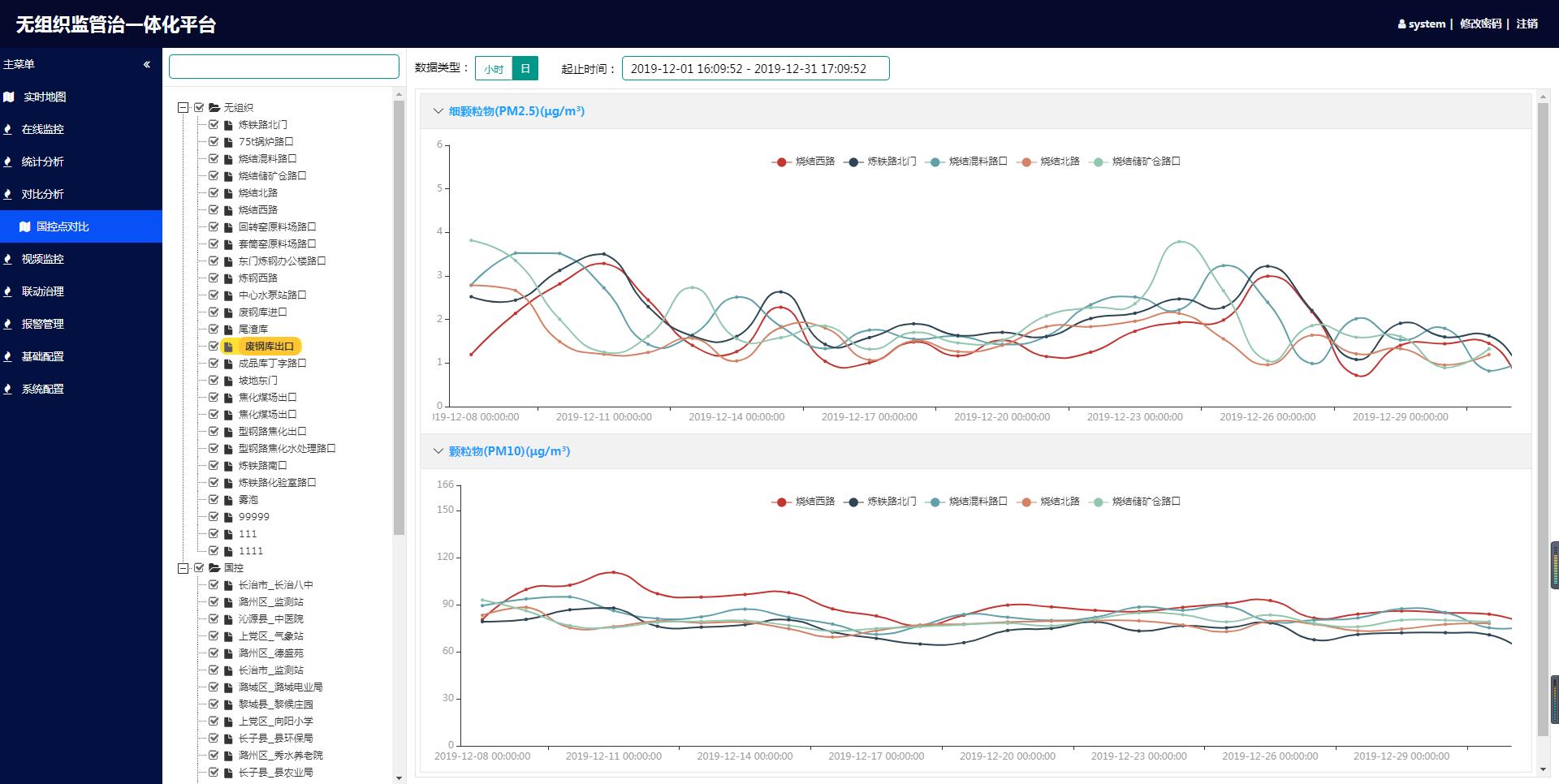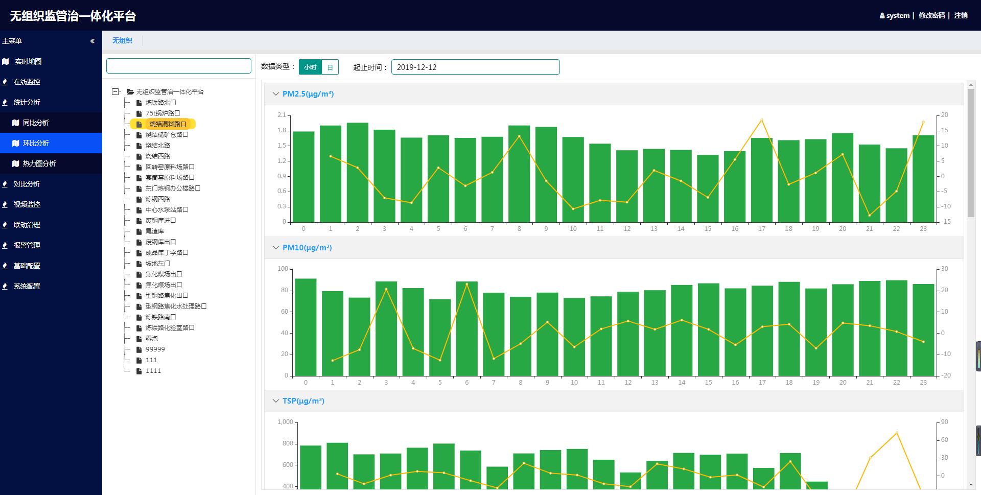 ①無組織排放源清單的展示,排放點實時數(shù)據(jù)、歷史數(shù)據(jù)展示及排名功能。