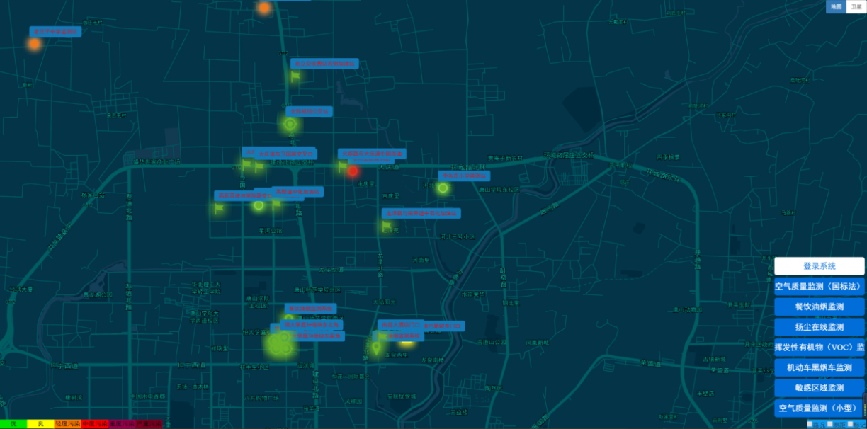 在應用層,可以GIS方式直觀、形象的實時顯示各監(jiān)測點位和整個區(qū)域的空氣質(zhì)量狀況,以及污染物濃度水平,并提供異常報警、區(qū)域空氣質(zhì)量變化趨勢等多種服務。