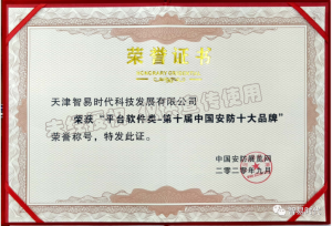 第十屆中國(guó)安防十大品牌榮譽(yù)證書(shū)
