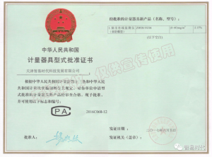 計(jì)量器具型式批準(zhǔn)證書(shū)