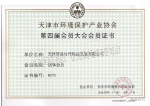 天津市環(huán)保產(chǎn)業(yè)協(xié)會(huì)會(huì)員證書(shū)