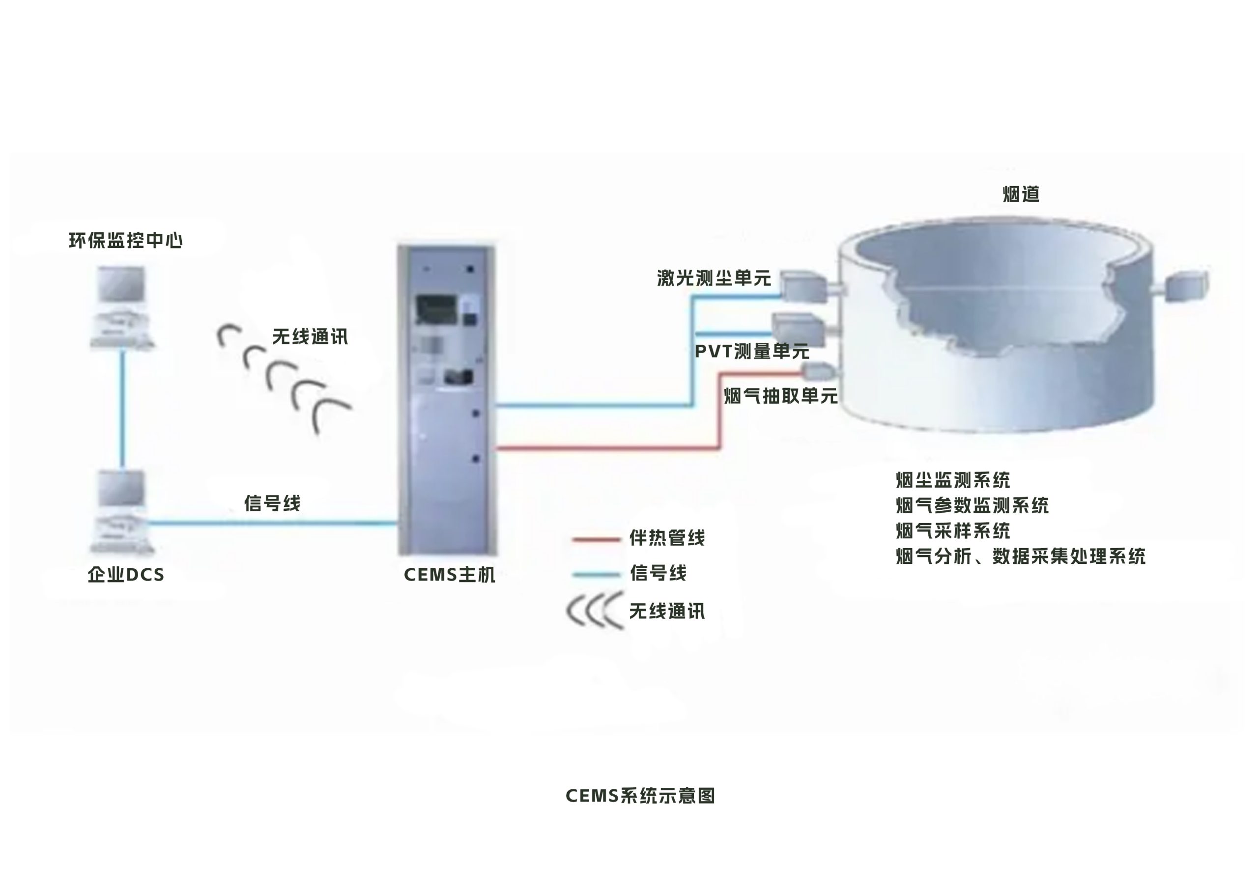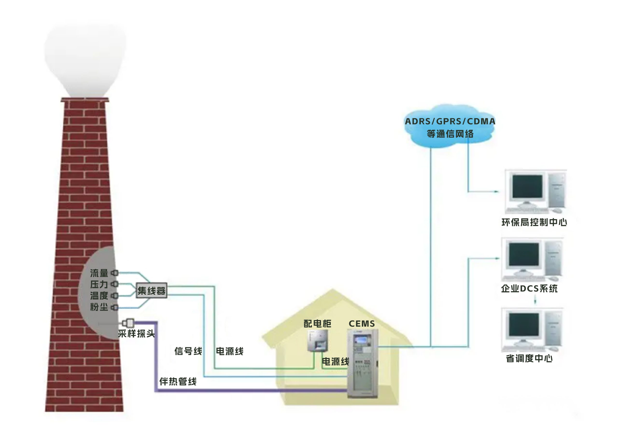 CEMS主要由煙氣參數(shù)測量子系統(tǒng)、顆粒物CEMS、氣態(tài)污染物CEMS、數(shù)據(jù)采集與傳輸?shù)葐卧啥?,形成一個(gè)集數(shù)據(jù)采集、處理、顯示、通訊、遠(yuǎn)程監(jiān)控的一體化系統(tǒng)。