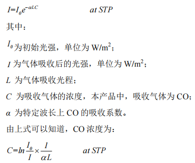 當(dāng)初始光強、光程、吸收系數(shù)、壓力、溫度等參數(shù)一定的情況下,就可以通過上式計算CO濃度。