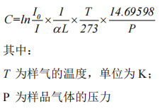 但是,環(huán)境溫度和壓力會影響樣氣的密度,使一氧化碳吸收的紅外光發(fā)生變化??紤]溫度、壓力的影響,濃度計算公式修正為: