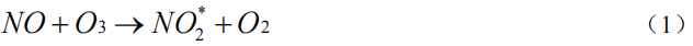 NO分子與O3發(fā)生化學(xué)發(fā)光反應(yīng),分為兩個步驟,第一步,反應(yīng)產(chǎn)生激發(fā)態(tài)的NO2分子: