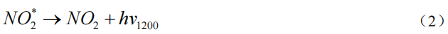 第二步,激發(fā)態(tài)的NO2返回基態(tài)釋放出光子,光譜范圍為(600~3200)nm,最強發(fā)光波長為1200nm:
